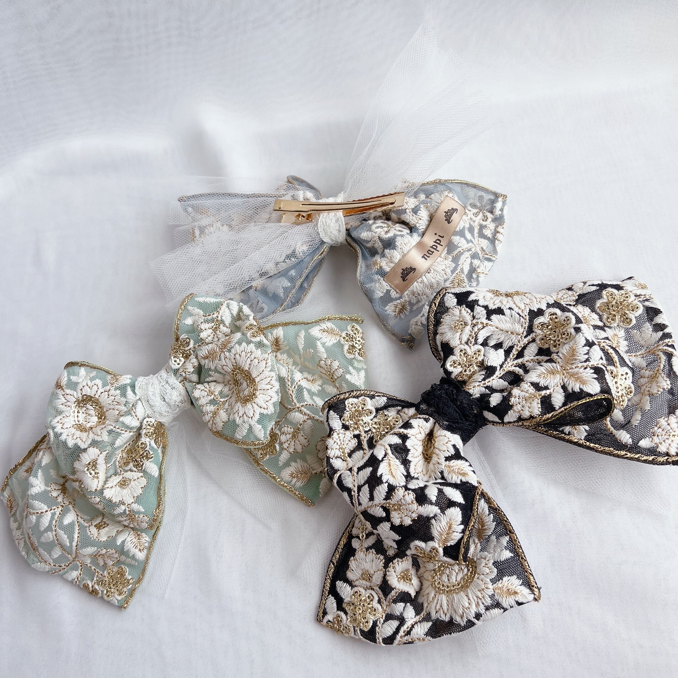 幅10㎝のリボンの後ろにはチュールが付いているので、大人可愛い雰囲気に❤︎