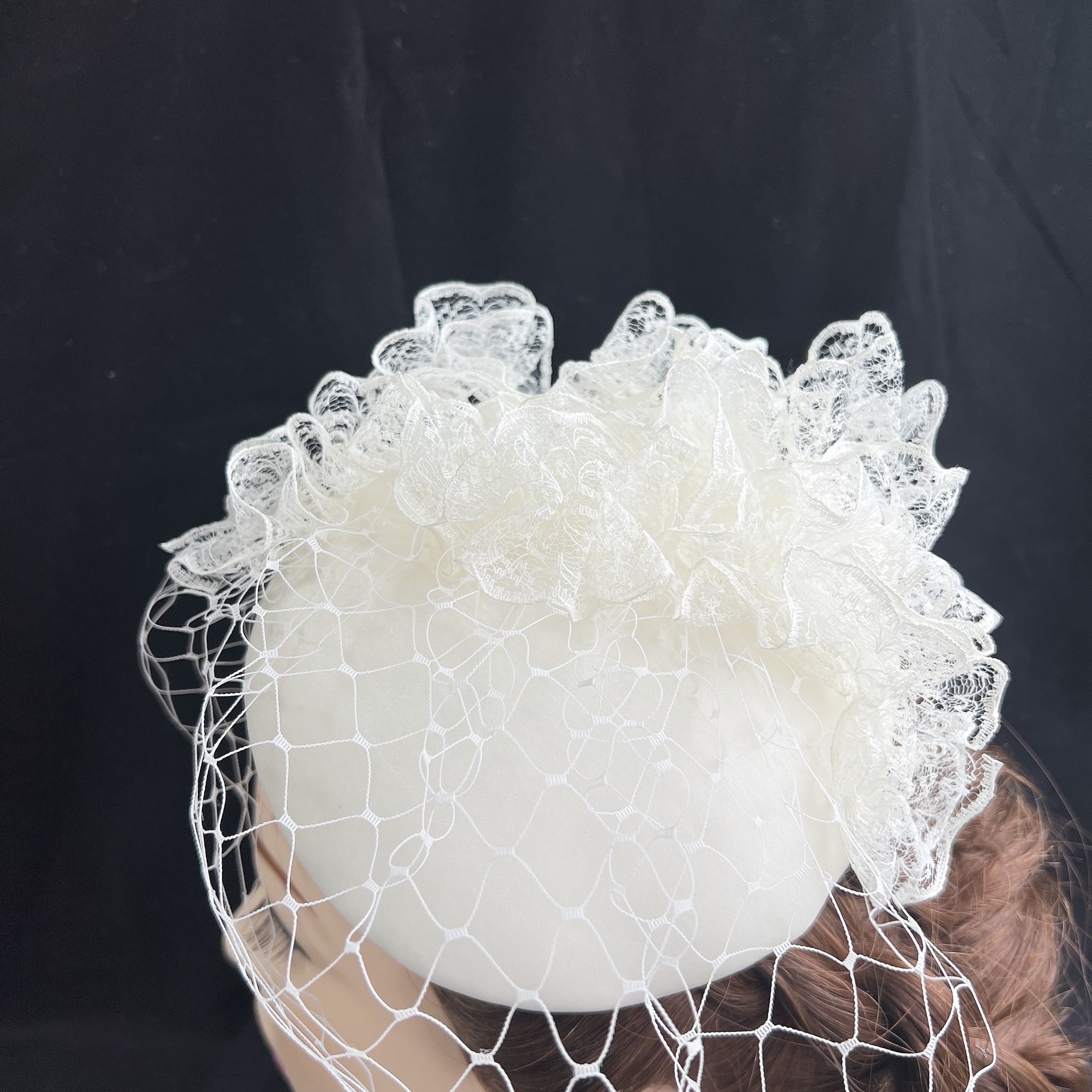 レースレースのオフホワイト トークハット